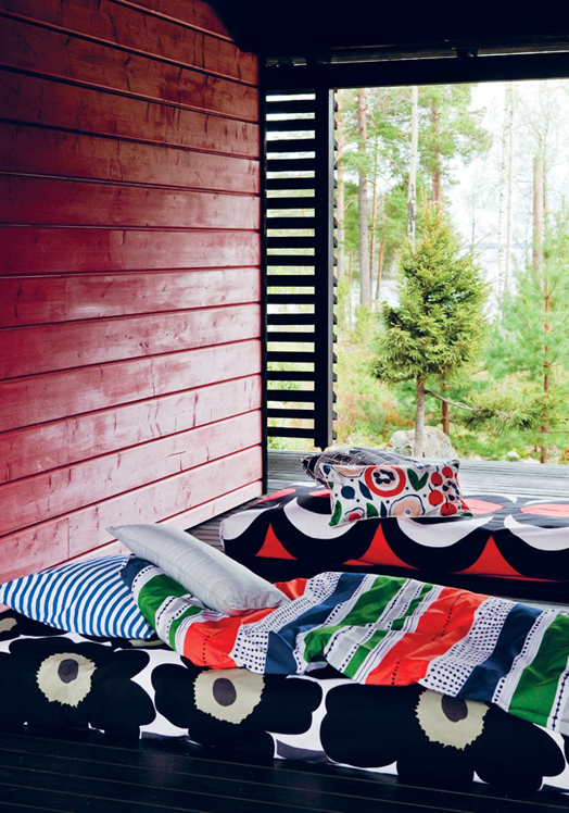 As we try and keep warm in the midst of our Southern Hemisphere winter, I thought I'd brighten up your day with some gorgeous images from the Marimekko Home Spring 2014 collection. I absolutely love the mix of bold patterns, and the beautiful, relaxed styling.